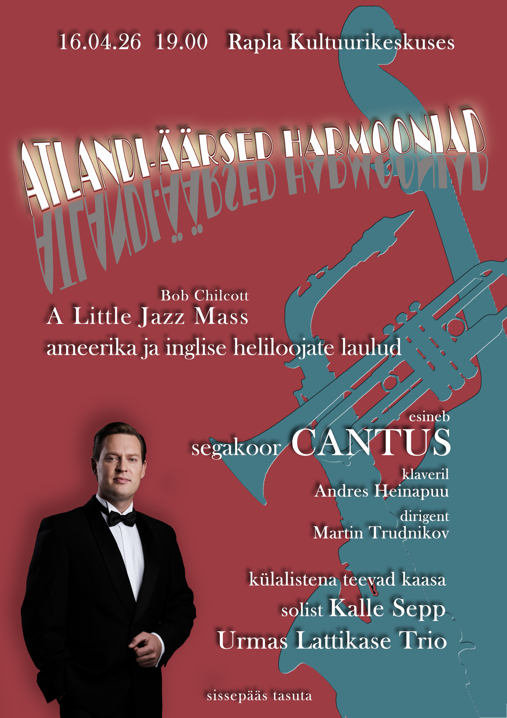 - Juubelikontserdil esitas koor Rudolf Tobiase motette, kaastegev oli Rapla Muusikakooli õpetaja, organist Kristi Hinsberg, ning Steve Dobrogoszi missa segakoorile ja jazz-sekstetile, kus on kaastegevaks 5 liikmeline sümfoniettorkester ja pianist. Sümfoniettorkestrisse kuulusid Toomas Hendrik Ellervee (I viiul), Eeva-Maria Laas (II viiul), Ann Mäekivi (vioola), Marten Meibaum (tšello), Andreas Arder (kontrabass). Pianist oli Leo Dubovsky
